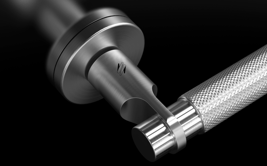 Developed entirely around cylindrical shapes and enhanced with a diamond-knurled grip, it offers a refined aesthetic and a unique, pleasant tactile experience.